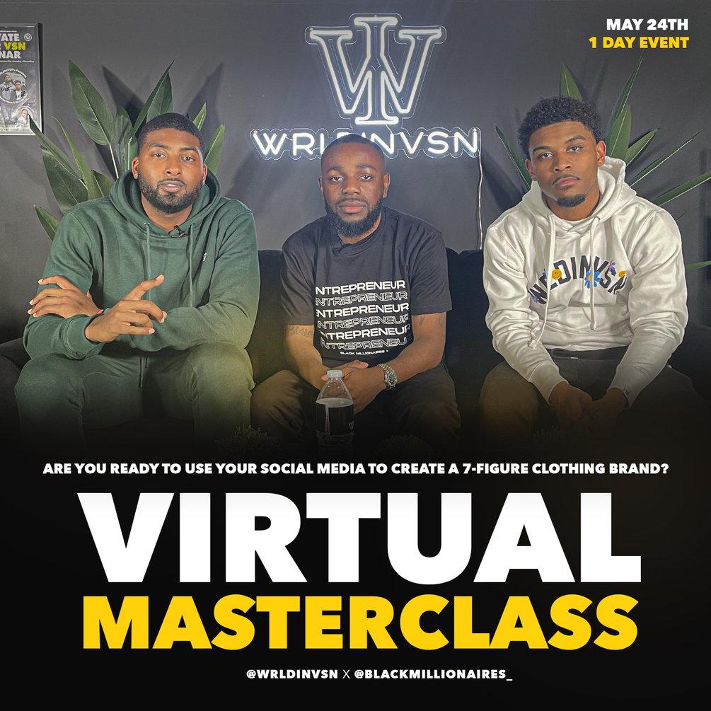 UPGRADE - MAY 24TH VIRTUAL CLASS: How To Build a 7 FIGURE Clothing Brand Leveraging Social Media - Black Millionaires & WRLDINVSN